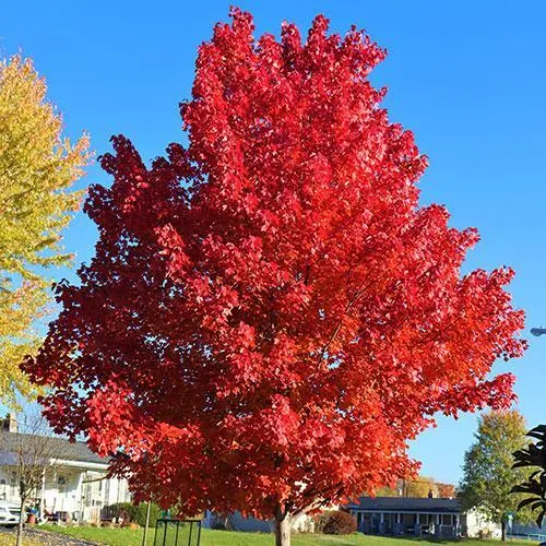 Fast growing. Spectacular red fall colors. SEEDLESS! Grows well in wide range of soils.
